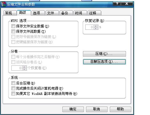 3、在高级那单击自解压选项.