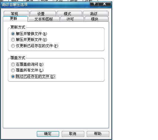 7、更新那里,覆盖方式选择"跳过已经存在的文件"